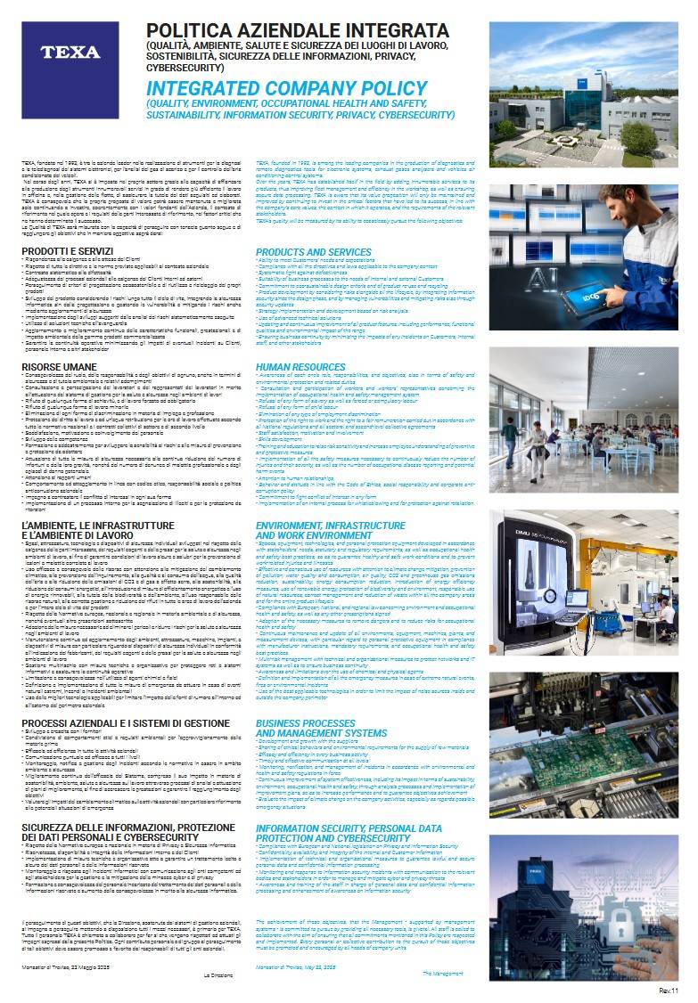 TEXA also obtained the ISO/IEC27001 certification thus proving its great attention to the protection of the information and data acquired by the single vehicles and managed for its Customers. Furthermore, in order to guarantee major protection in this area, in 2020 TEXA obtained the TISAX certification, a very severe standard applied by German vehicle manufacturers.