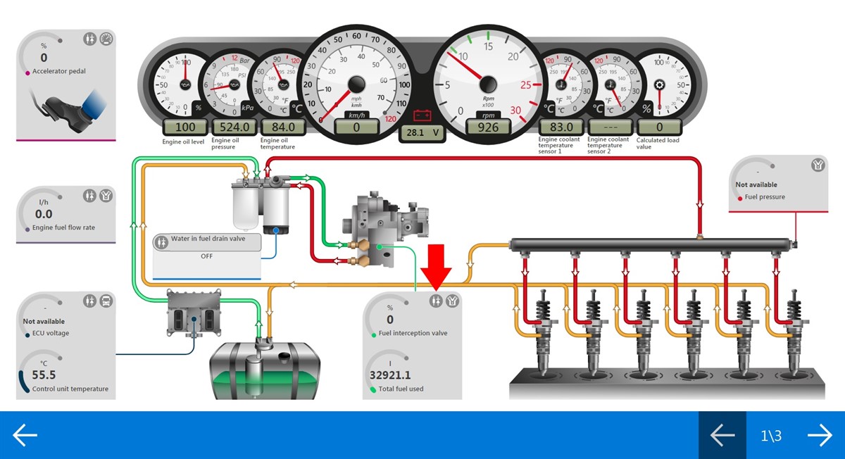 Starting from the TRUCK 50.0.0 update, a new function is available for some models which allows viewing the wiring diagrams directly from the parameter dashboards. By clicking on the parameter in the dashboard, you will be redirected to the corresponding wiring diagram.